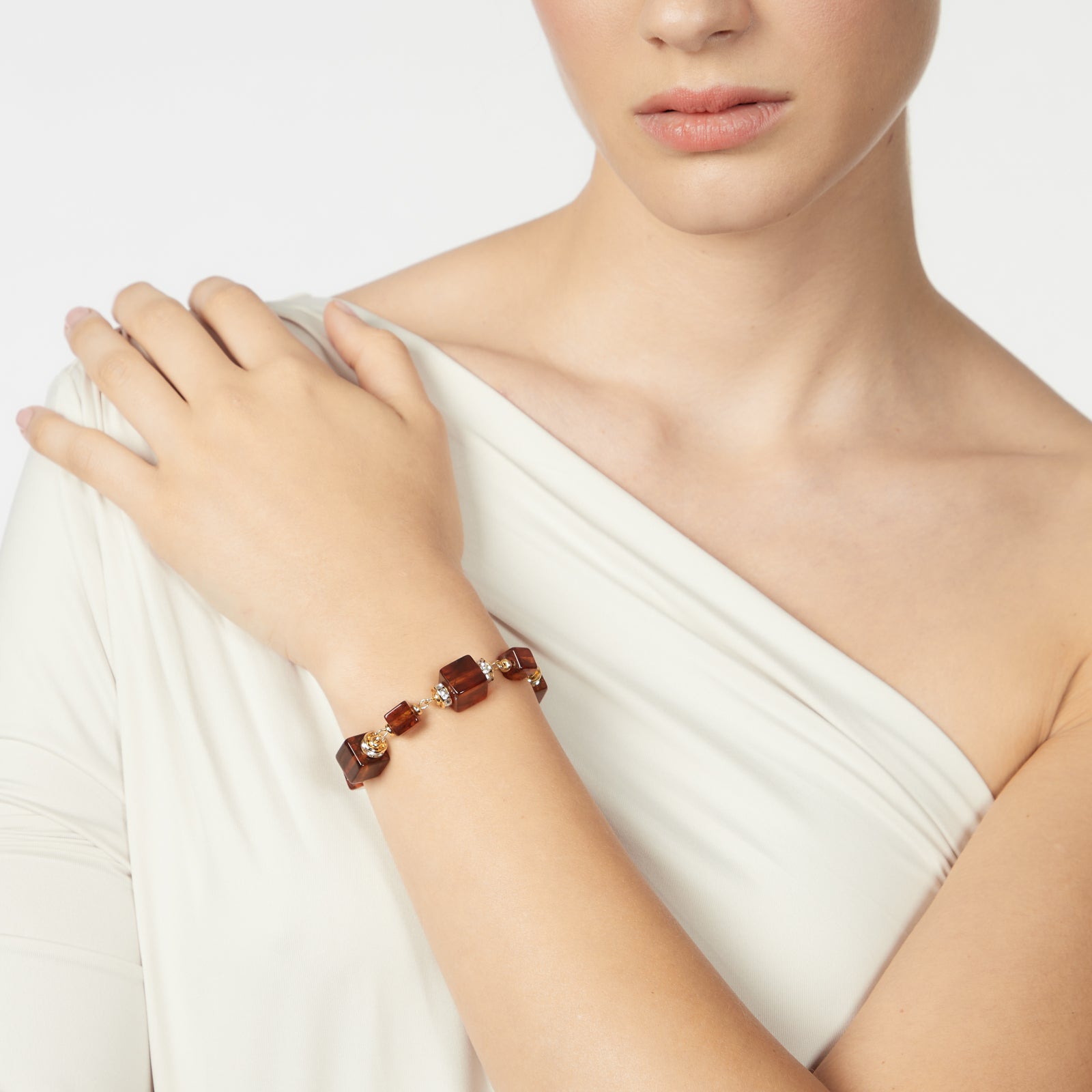 Cubes in tortoiseshell or black resin create graphic and modern structures. Bold and sophisticated necklaces, bracelets, and earrings, where geometry becomes style.