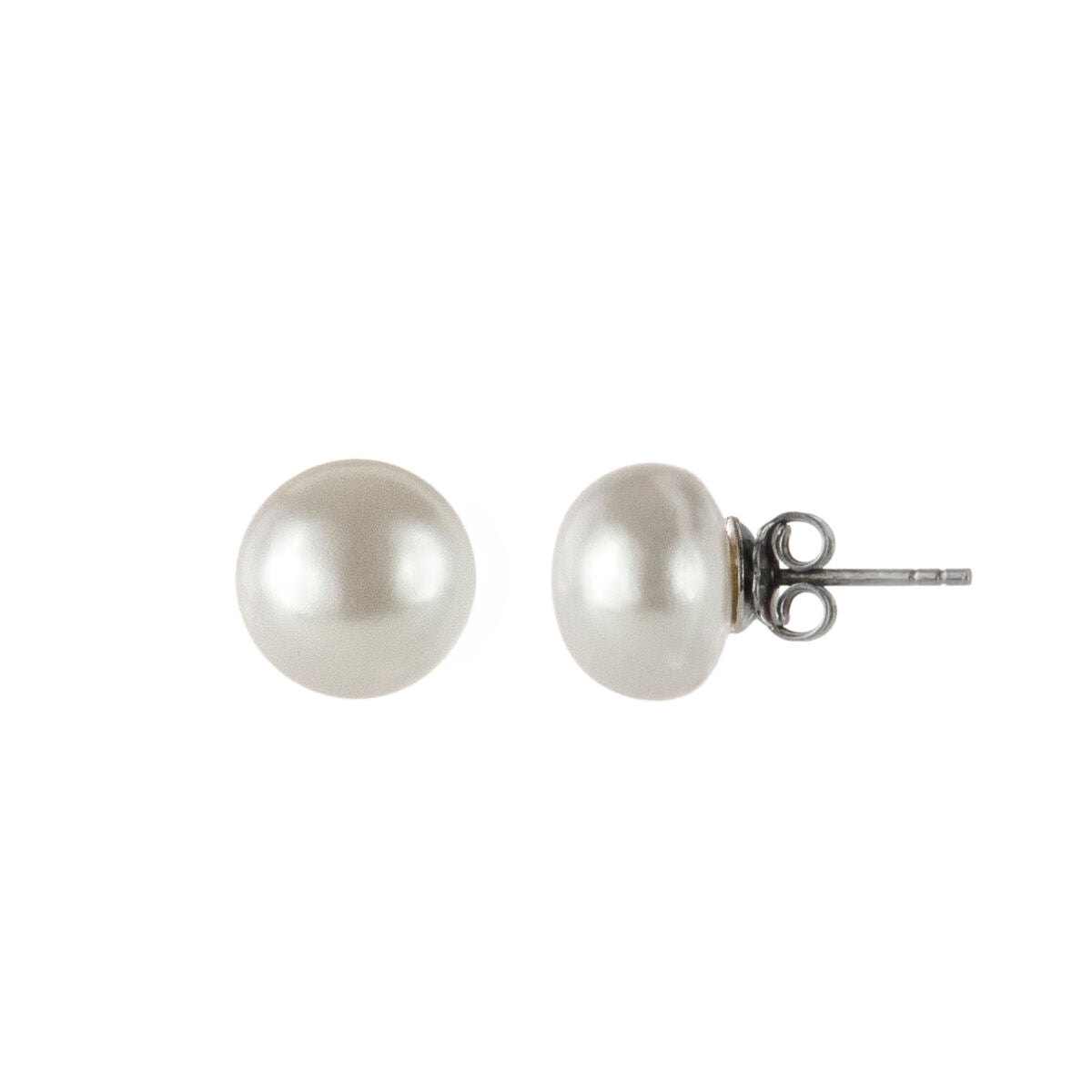 Earrings with oblate pearl Pearl - White