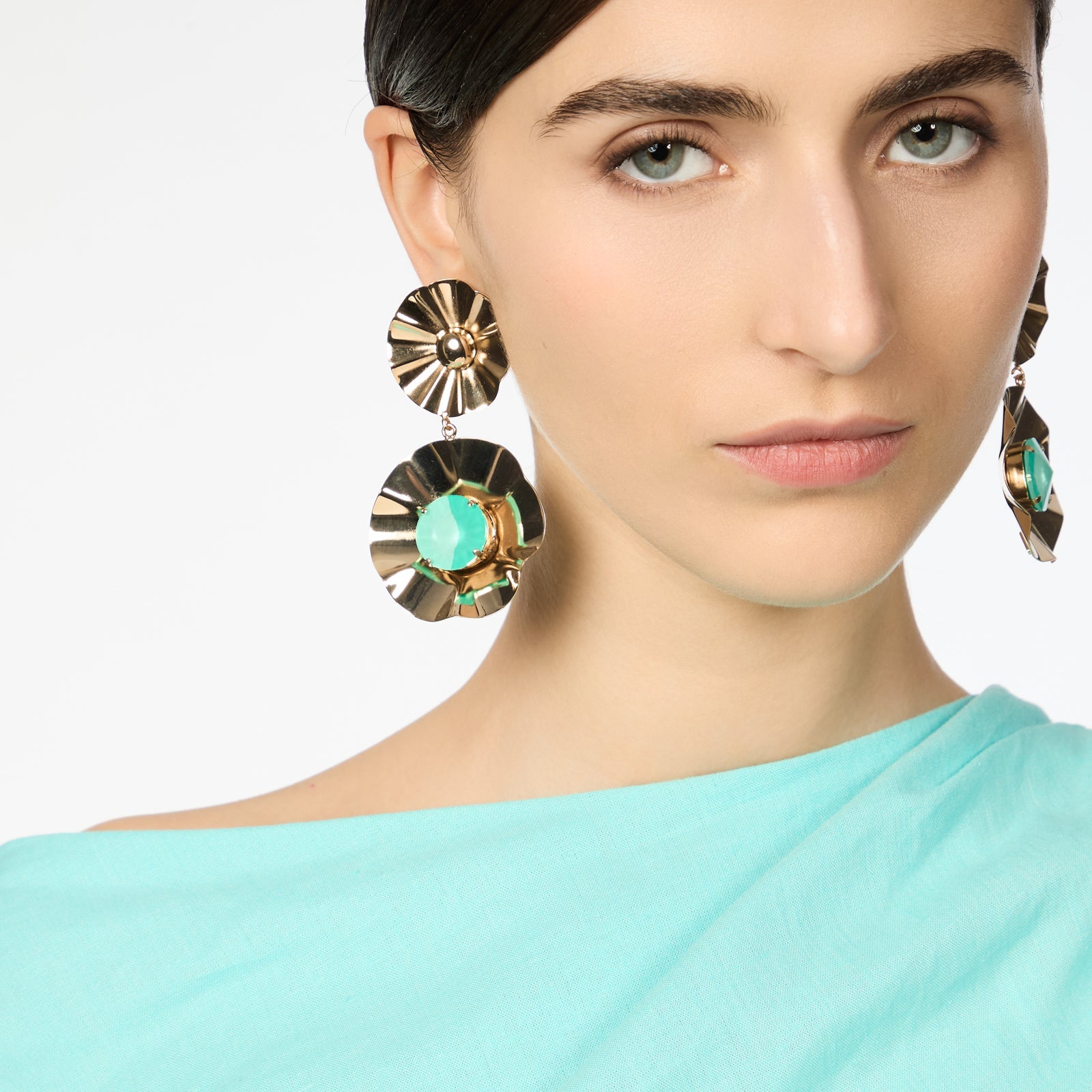 Materiali: ottone, cristallo smaltato. Dimensioni 3 x 3,5 cm.