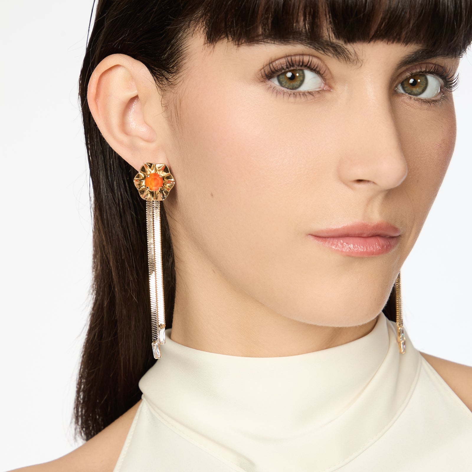 Questo sfizioso anello regolabile è l'ideale tocco finale per un look di grande finesse. Design con splendente fascia larga e top a cupola dai cerchi concentrici e brillantissimo cristallo al centro, per regalare ipnotici effetti cromatici al tuo look. Un accessorio perfetto in qualsiasi occasione, in una versione dalle accattivanti cromie dell'arancio e oro. Logo Sodini sulla fascia.