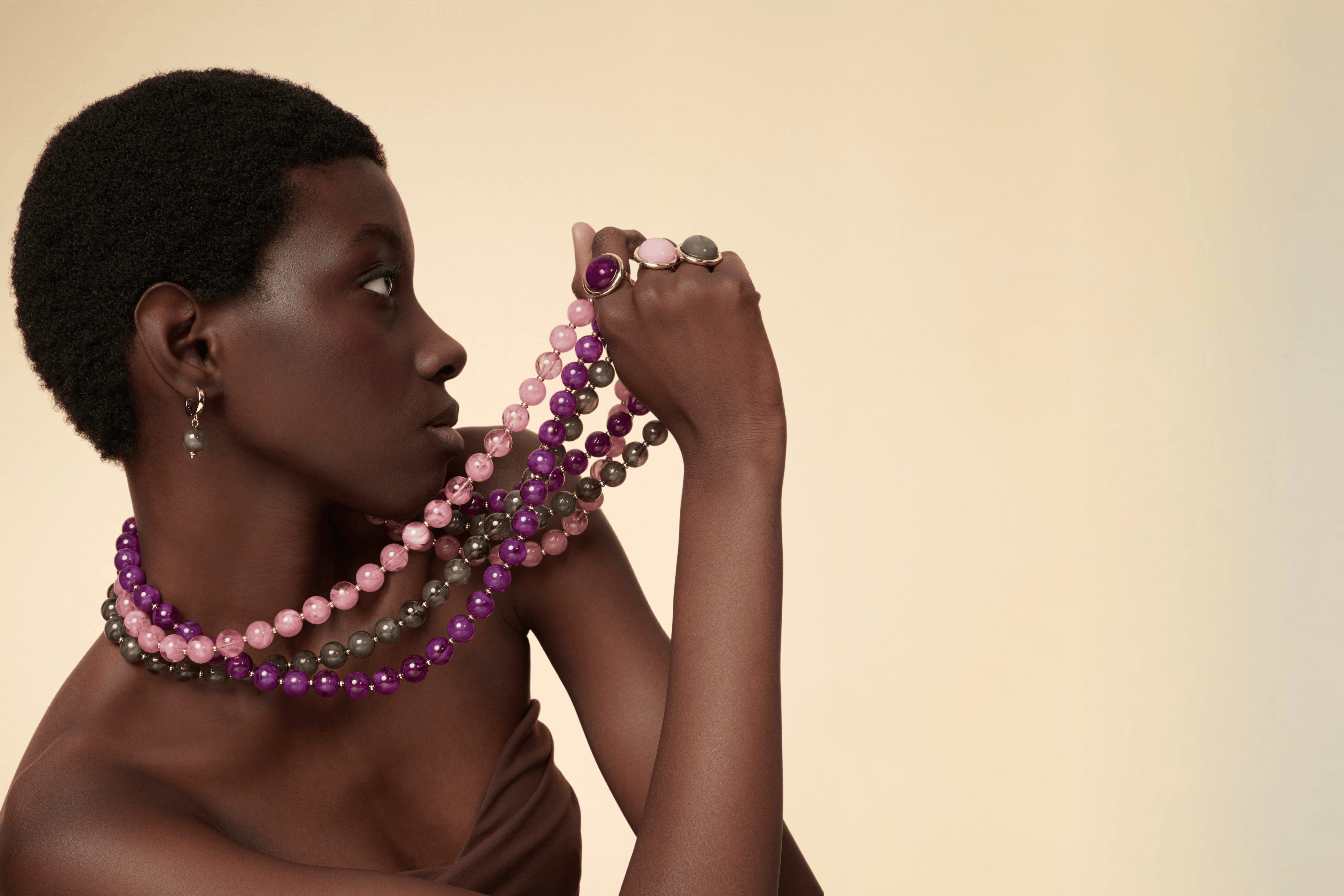 Ester esprime il gusto di chi ama sperimentare con lo stile e vivere ogni giorno con un’attitude contemporanea, trasformando l’energia di Babilonia in una libertà tutta personale. I gioielli si alternano tra volumi irregolari e geometrie inaspettate, in una composizione che gioca con ritmo e varietà.